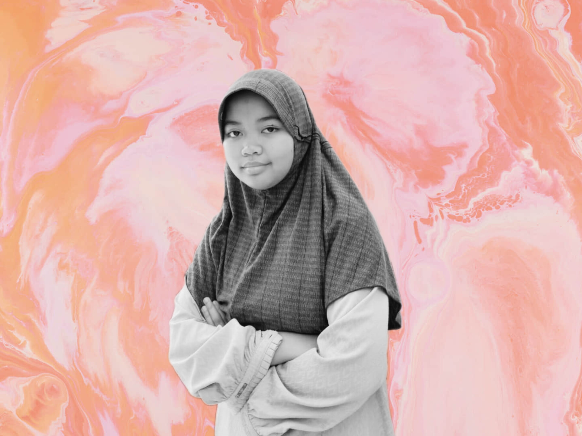 Yumna memakaikanku kerudung. Awalnya terasa asing, namun hatiku justru terasa penuh.
