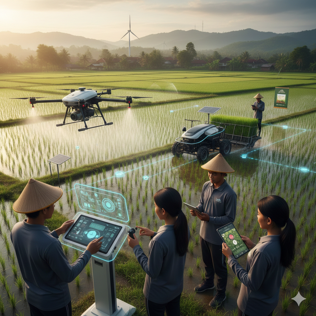 Namun gambaran itu tidak sepenuhnya mencerminkan realitas pertanian masa kini yang mulai berubah cepat. Di berbagai wilayah, teknologi telah masuk ke ladang dan sawah, menghadirkan model pertanian yang jauh lebih efisien, bersih, dan menarik bagi generasi digital. Drone kini digunakan untuk pemetaan lahan dan penyemprotan, sensor IoT mampu membaca kelembapan tanah dan kebutuhan nutrisi secara real time, dan greenhouse modern memungkinkan pemuda menghasilkan komoditas premium tanpa bergantung pada cuaca. Urban farming dan hidroponik menjadikan pertanian mungkin dilakukan di lahan sempit, bahkan di halaman rumah. Semua ini memperlihatkan bahwa pertanian hari ini tidak lagi identik dengan lumpur dan kerja kasar; ia telah naik kelas menjadi sektor teknologi yang mengandalkan data, otomatisasi, dan inovasi.
