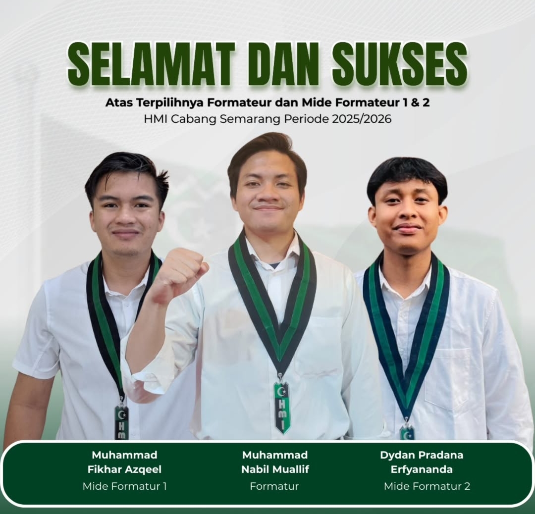 KAHMI Kota Semarang pun menyampaikan selamat kepada formateur dan para mide formateur yang akan menyusun kepengurusan baru untuk periode 2026. “Semoga pengurus berikutnya terus menjaga HMI sebagai organisasi pencetak kader insani bagi umat dan bangsa,” tutur Cak Qomar.