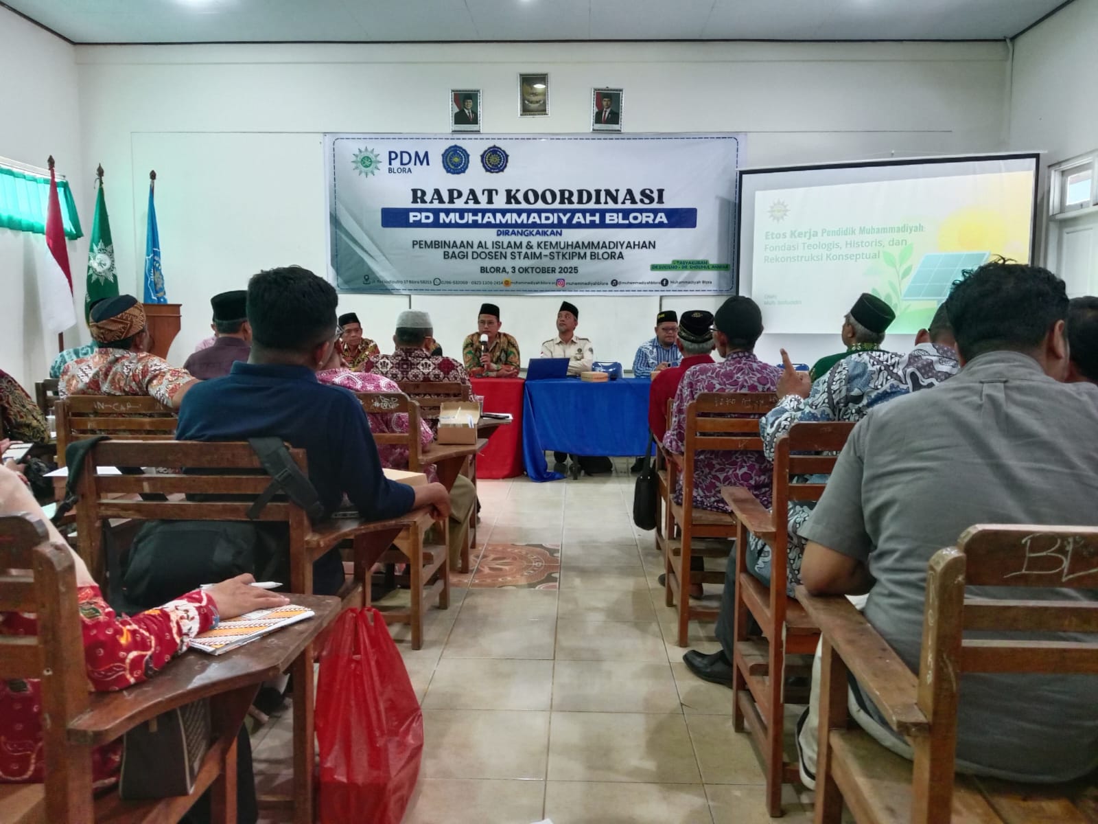 Blora, PikiranBangsa.co — Pimpinan Daerah Muhammadiyah (PDM) Blora menyelenggarakan Rapat Koordinasi yang dirangkai dengan Pembinaan Al-Islam dan Kemuhammadiyahan bagi dosen STAIM dan STKIPM Blora pada Jumat, 3 Oktober 2025.